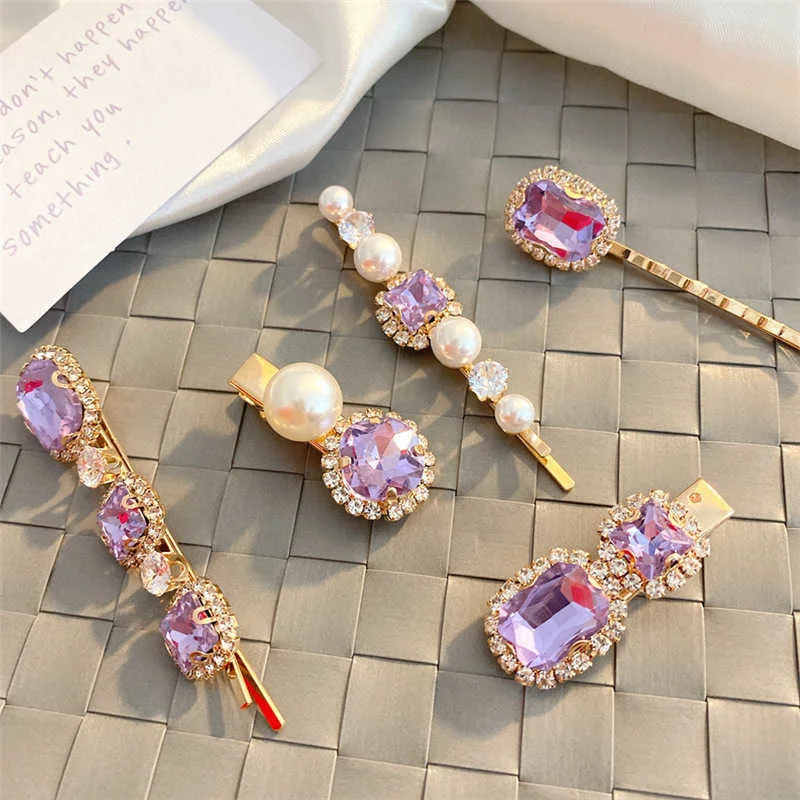 1 Set Women Hair Clips Headwear Jewelry Fashion Crystal Hair Accessories for Girls Luxury Pearl Barrettes Pins Christmas Gift