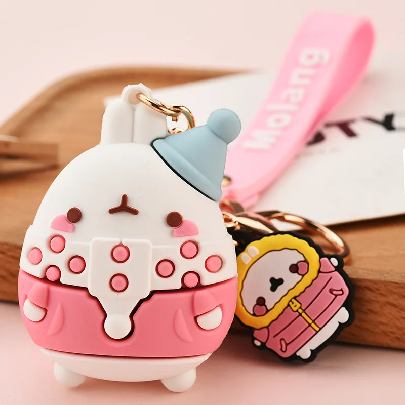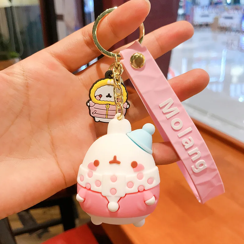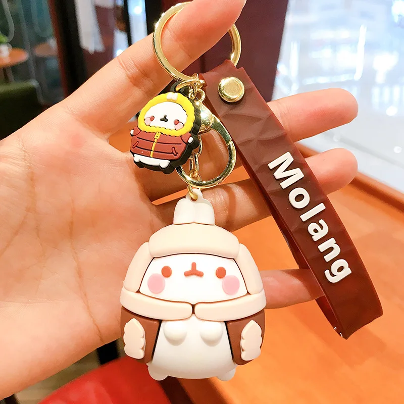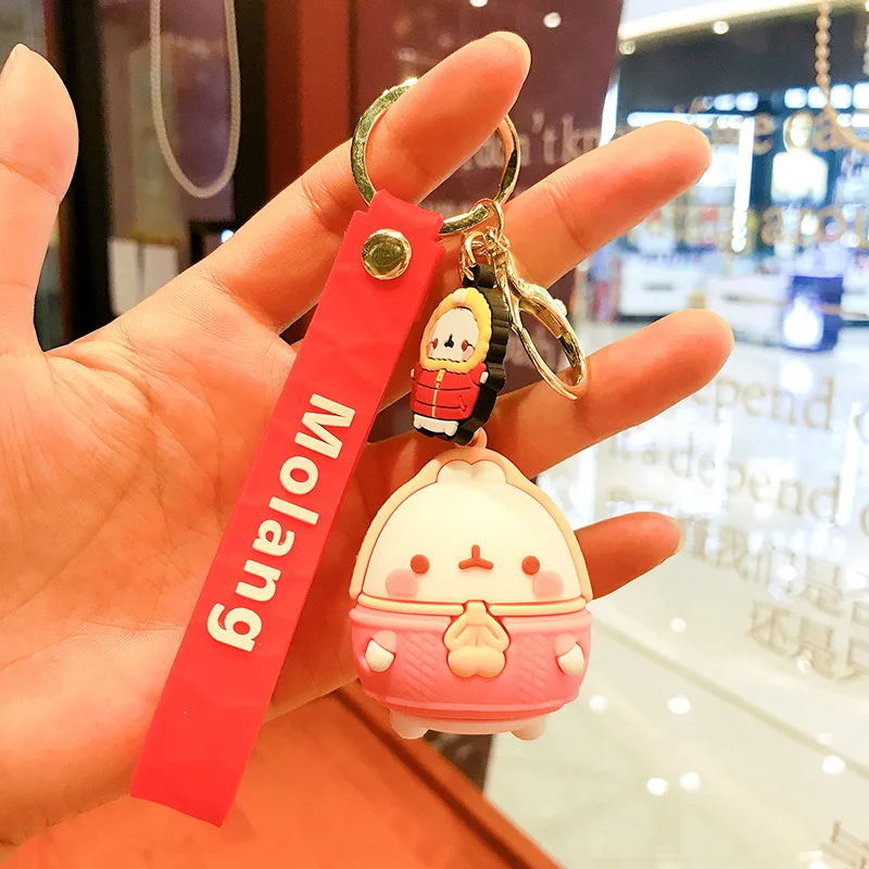 2022 Molang Rabbit Korean Cartoon Keychain Cute And Exquisite Pvc Cartoon Doll Key Chains Hanging Decoration Keyring Accessories